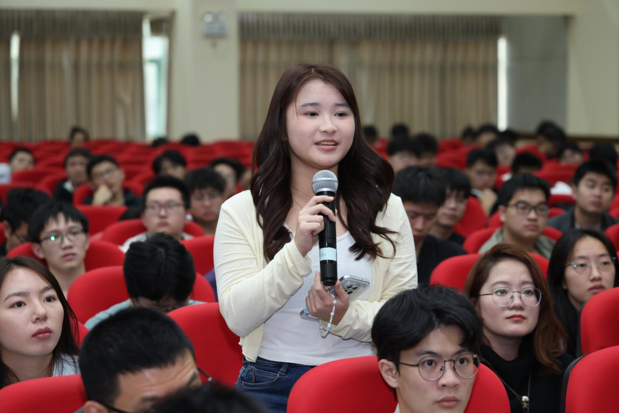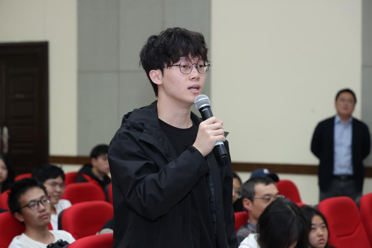 随后,戴彧虹院士以“Recent Progress on Linear Programming Based Algorithm for Pooling Problems”为题,重点阐释了分布式递归算法理论及其在石油化工企业的应用,以实际案例诠释了数学是提高解决复杂工程问题能力的重要基础。他鼓励同学们坚持自己的兴趣方向和人生追求,激励大家在学习和科研中不断提升自我。戴院士的报告深入浅出,不但让在场师生深入了解数学的前沿动态,也让大家认识到“数学是破解工程难题的钥匙”。互动交流中,同学们围绕“如何解决科研中卡脖子问题”等问题踊跃提问,戴彧虹院士鼓励同学们应发掘自身真正热爱且愿意潜心钻研的领域,坚持不懈地深耕细作,通过兴趣驱动、热爱支撑和科学方法,探索通往成功的途径。